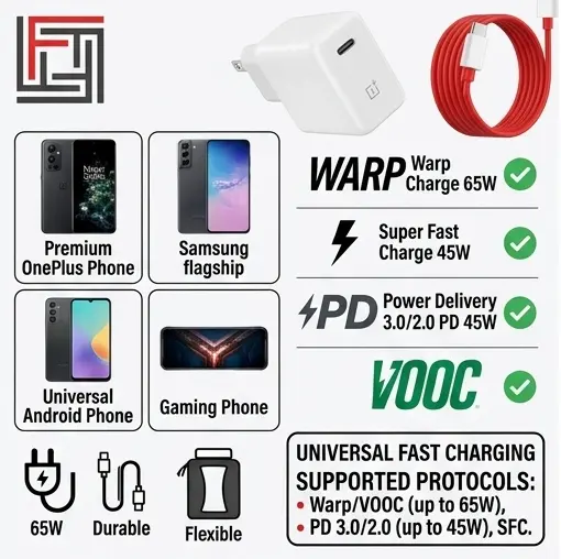 Universal Compatibility of OnePlus 65W Warp Charger